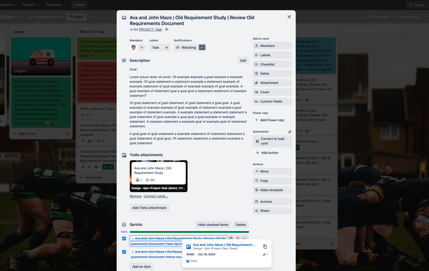 Since work products can be created and deposited on cards, progress made by the team is available at any time to the stakeholders. With clever use of power ups, these deliverables can be delivered to the stakeholders, if so required.Depending on the board design, new or unplanned work can be added. 5. Sprint Retrospective: